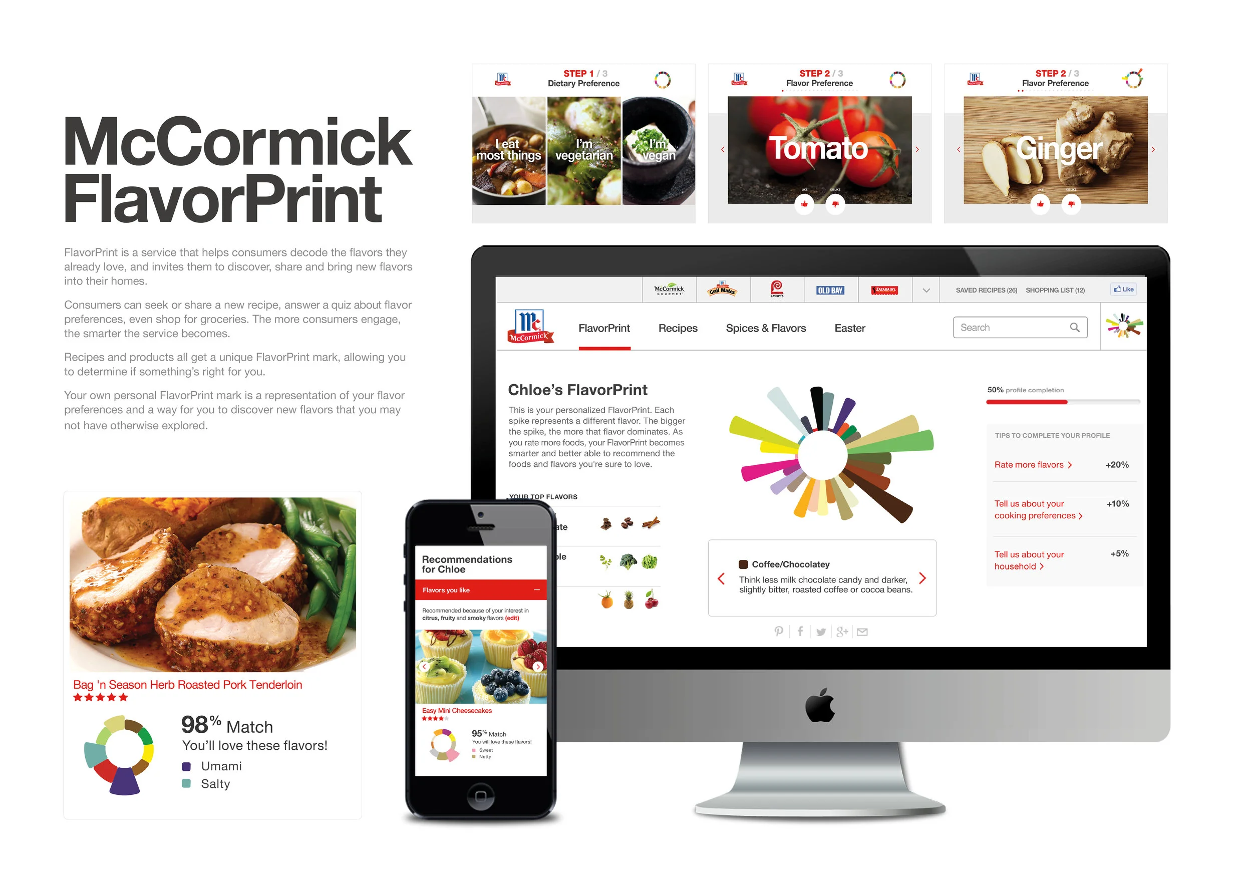 McCormick's mission is to save the world from boring food. With that in mind, we created a platform that translated one's palate into a visual symbol representing flavor called a FlavorPrint. With FlavorPrint, consumers could not only find the recipes they love but discover the ones they were about to.